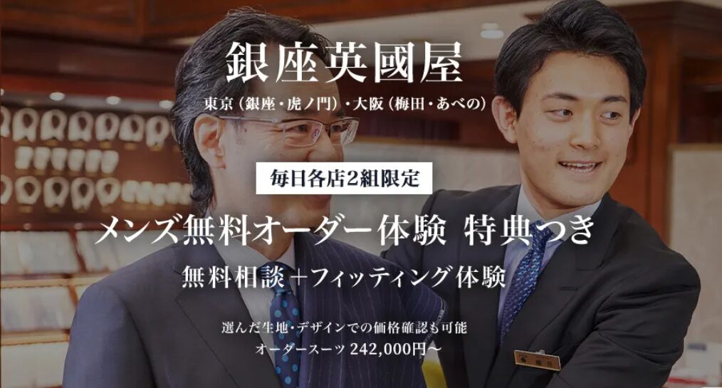オーダースーツ銀座英國屋では無料オーダー体験を実施中!