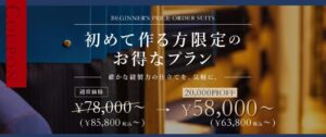 はじめて作る方限定のお得なプランで通常価格85,800円(税込)~が、63,800円(税込)~でオーダースーツを作ることが出来ます。