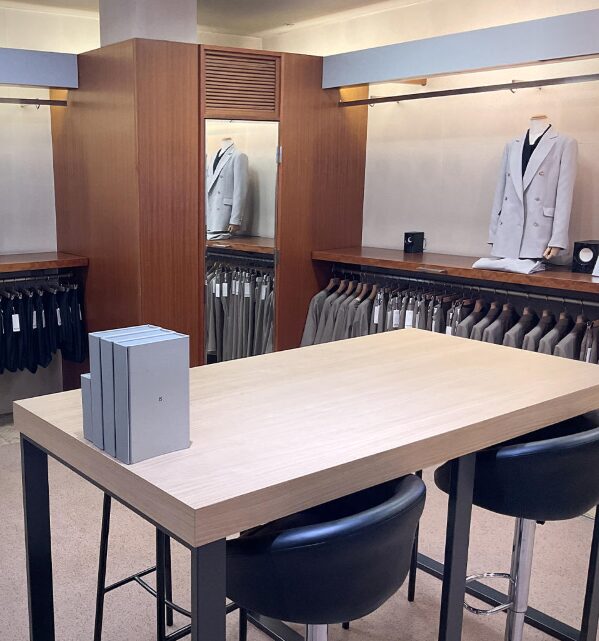 ベストマン内にあります 沢山の生地から選べて、ボタンやデザインを決めていけるのでこだわりのスーツが作れます、 店長、元店長さんも温かく接客してくださり、丁寧に採寸して頂けます。 出来上がりが楽しみです。