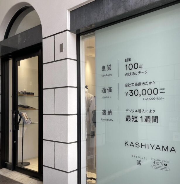 KASHIYAMAは「高品質×低価格×短納期」を実現したオンワードホールディングスが展開するオーダーメイドスーツブランド。
