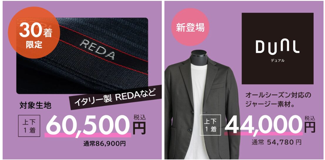 オーダースーツSADAでは定期的にキャンペーンを実施しています。