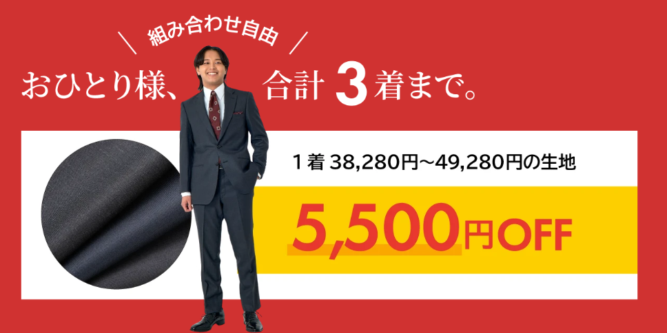 【初回限定】19,800円(税込21,780円)でオーダースーツがつくれる!