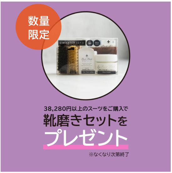 ⑤38,280円以上のスーツを購入で靴磨きセットをプレゼント!